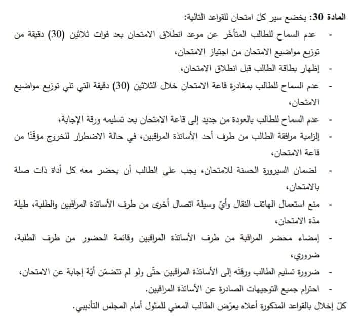 _____ تذكير بالقواعد القانونية لسير الإمتحانات _____