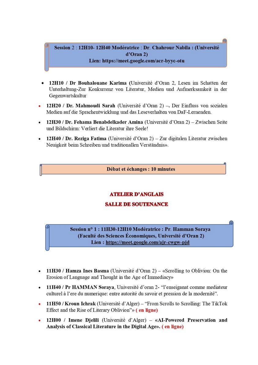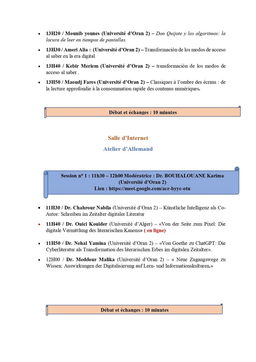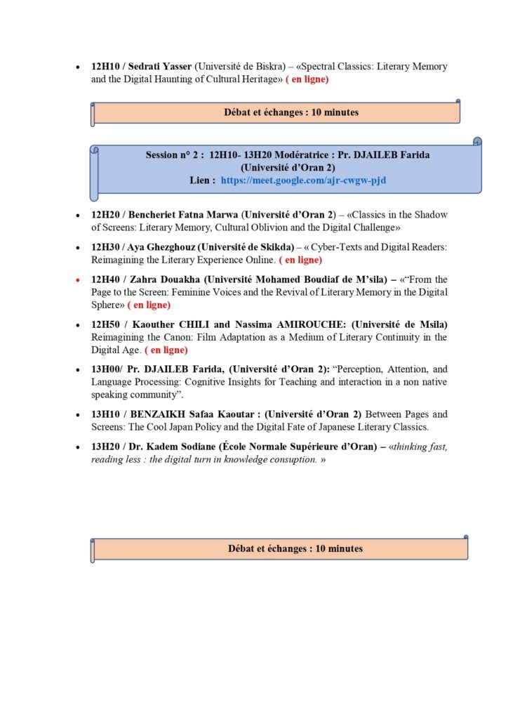 Journée d’étude « Classiques à l’ombre des écrans : mémoire littéraire, oubli culturel et défi numérique », organisée par la Faculté des Langues Étrangères – Université d’Oran 2. qui se tiendra le mercredi 19 novembre 2025