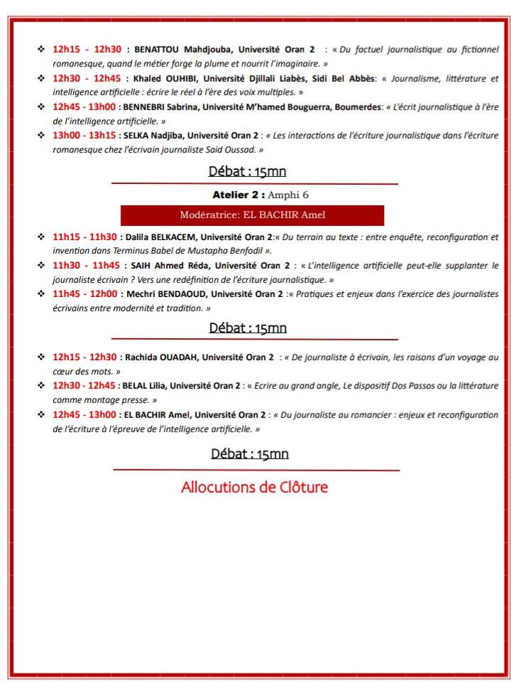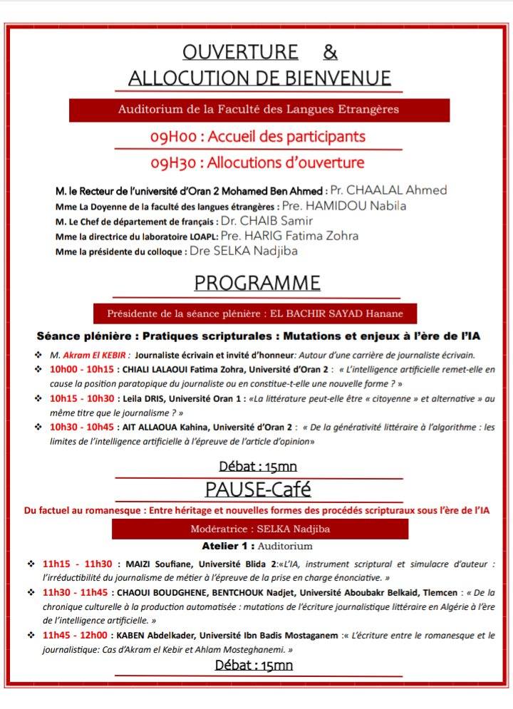 – Présidente de la journée : Dre. SELKA Nadjiba