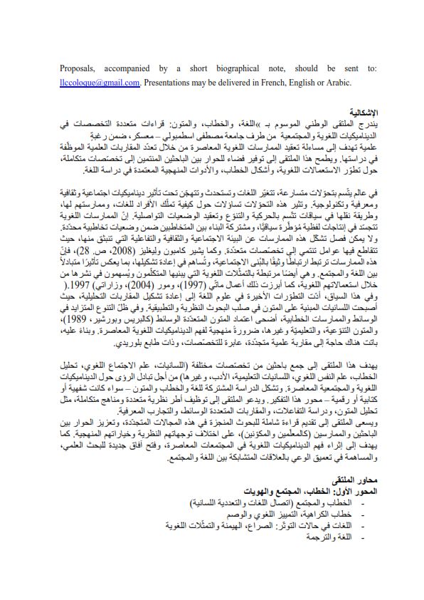 Les communications peuvent être présentées en français, en anglais ou en arabe.