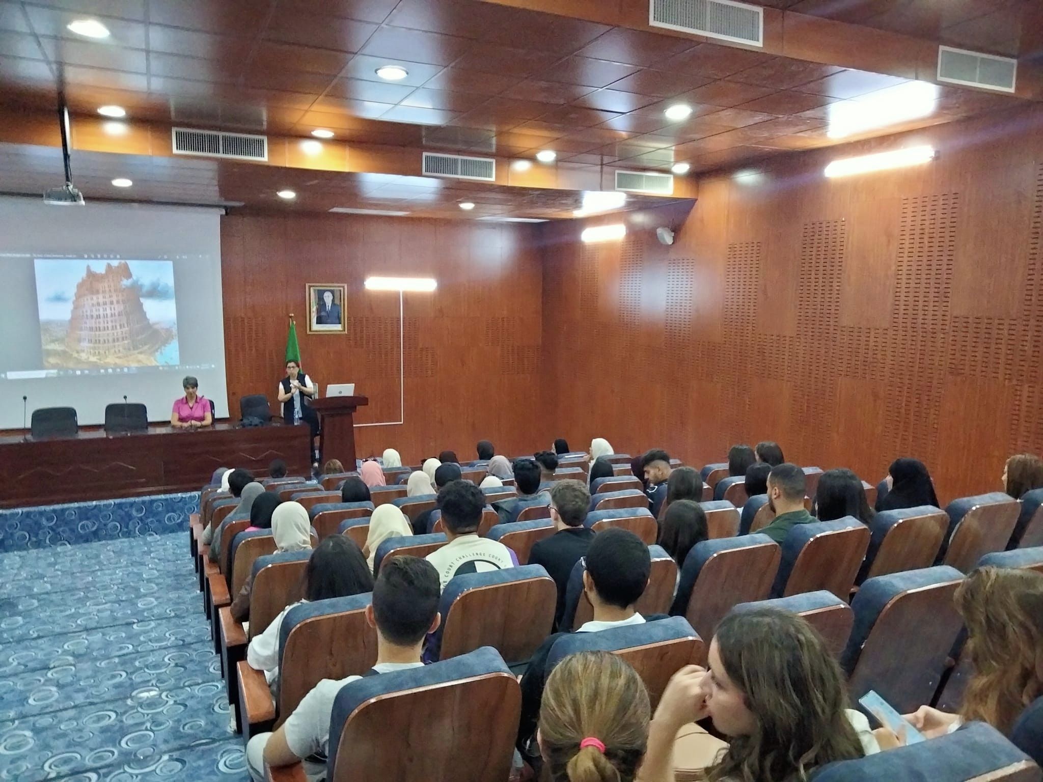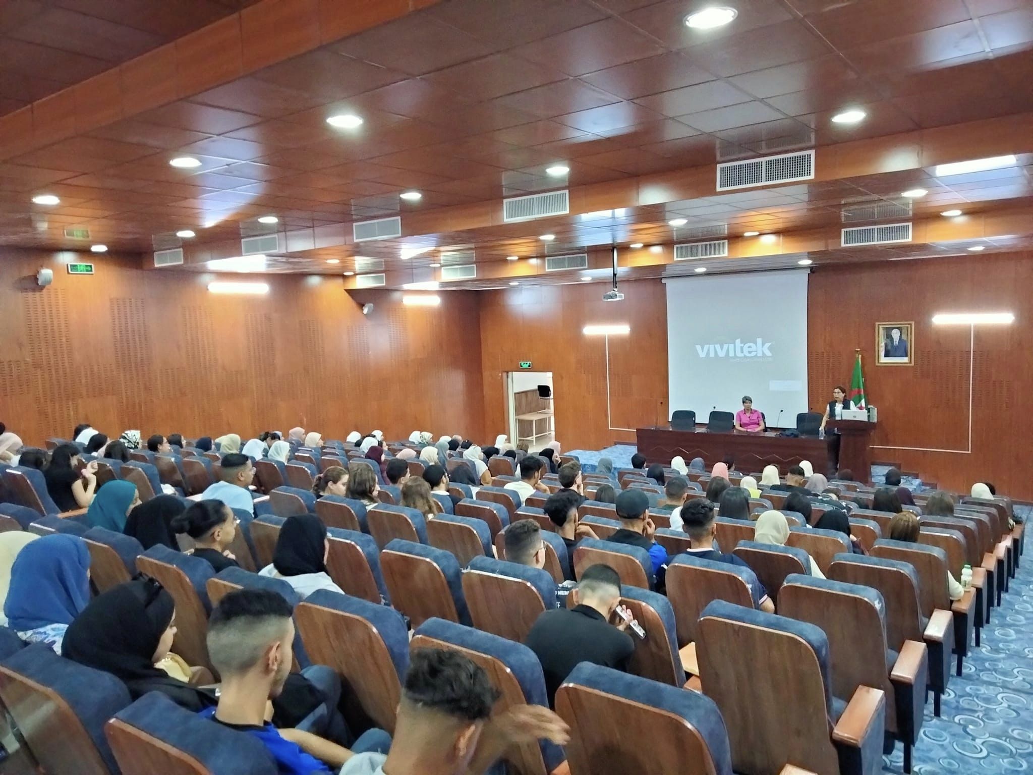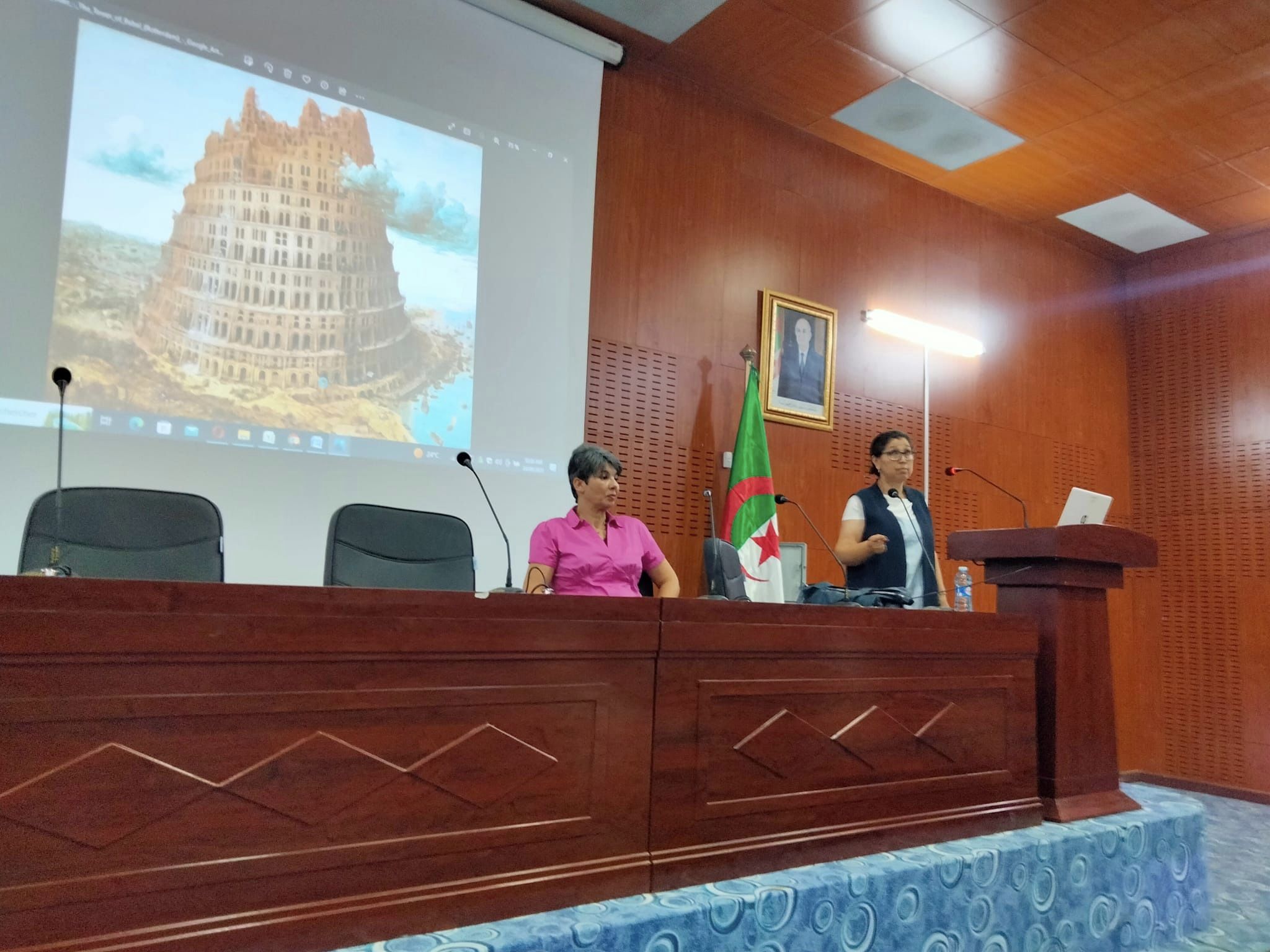 On Sunday, September 24, 2023, after the opening speech by the Dean of the Faculty of Foreign Languages, Prof. BOUAYED-HAMIDOU Nabila, Dr. Samia Boussebaine presented the inaugural course titled: « The Adventure of Languages, from Origins to the Present Day » in the faculty’s auditorium. The audience consisted of both new and returning students and teachers.