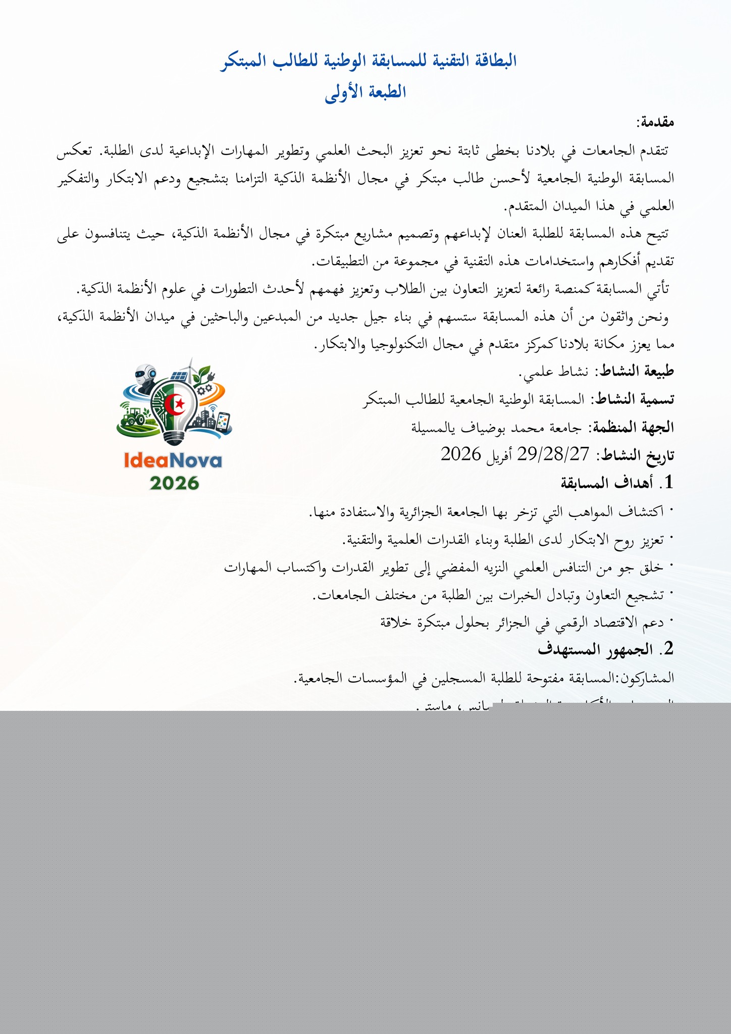 la Première Édition du Concours de Poésie aux étudiants de la ville universitaire d’Oran, à l’occasion de la journée mondiale de la poésie insitituée par l’UNESCO