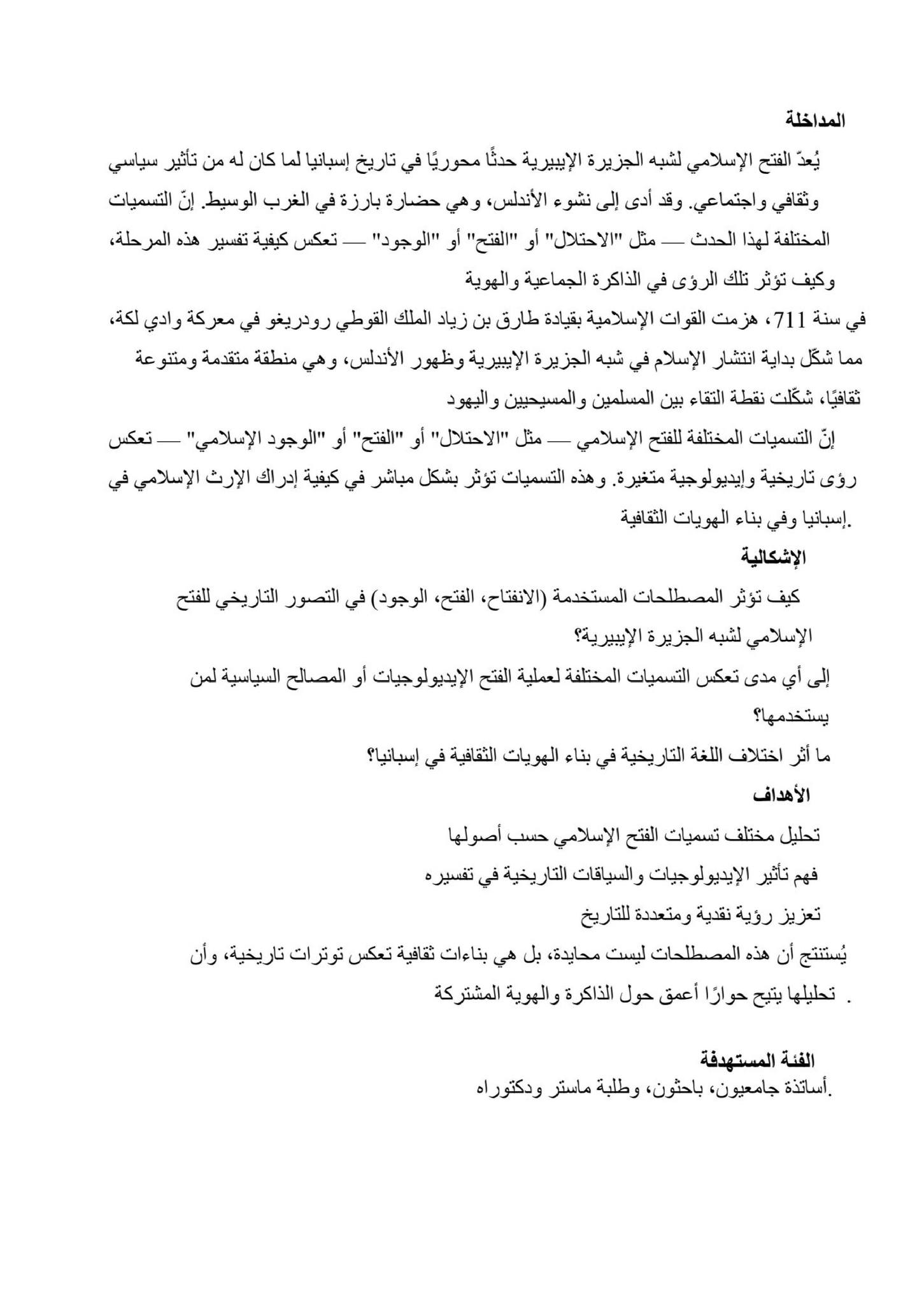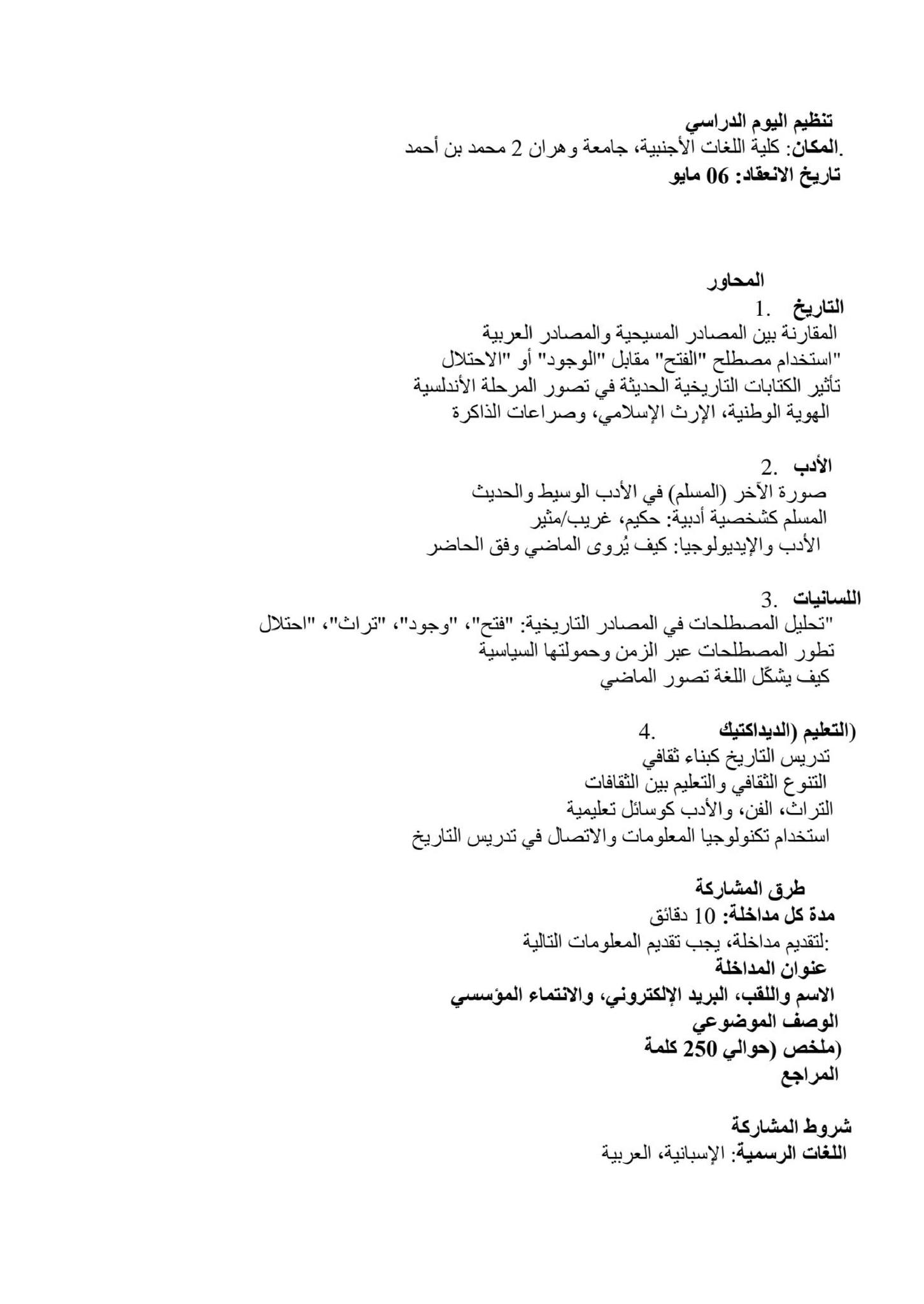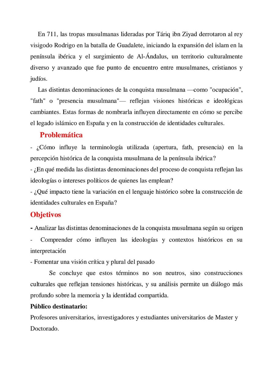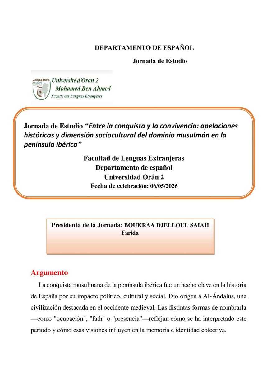 Journée d’étude Journée d’étude 📚 « Entre la conquête et la coexistence : appellations historiques et dimension socioculturelle du domaine musulman dans la péninsule ibérique »« Entre la conquête et la coexistence : appellations historiques et dimension socioculturelle du domaine musulman dans la péninsule ibérique »