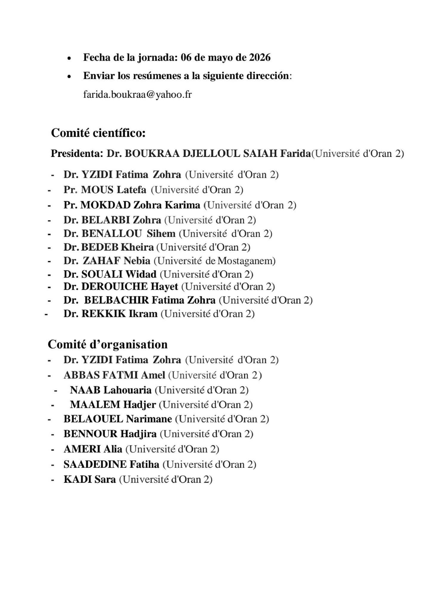 Le Département d’Espagnol de la Faculté des Langues Étrangères – Université d’Oran 2 Mohamed Ben Ahmed organise une :