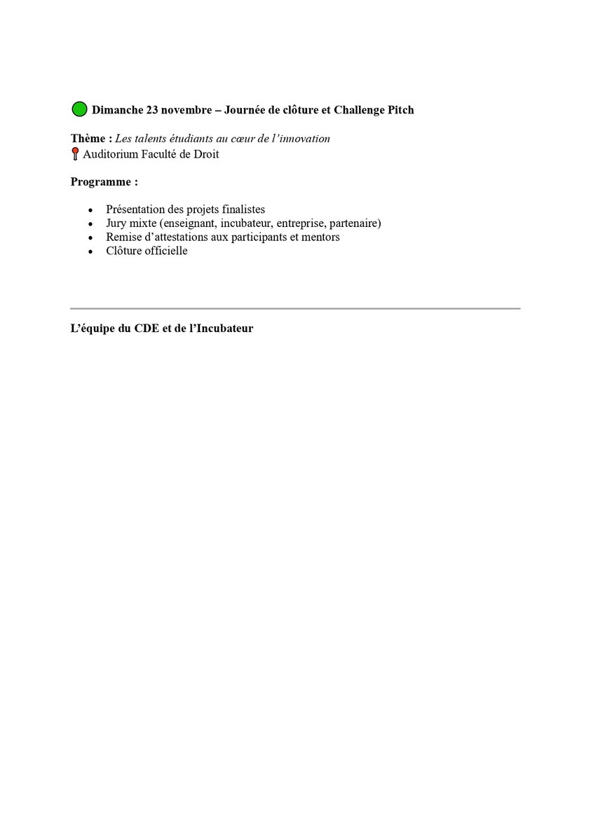 Les étudiants porteurs d’idées à s’inscrire et à participer activement à toutes les activités proposé