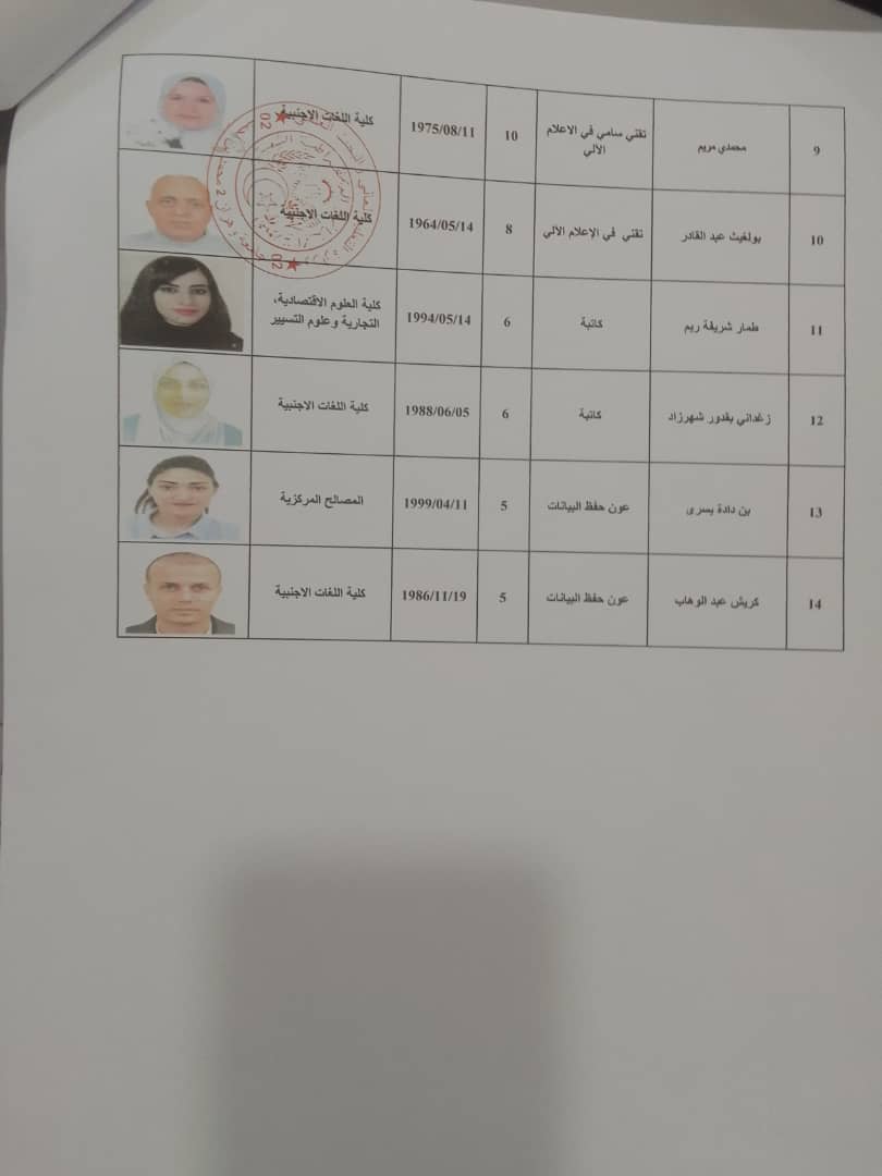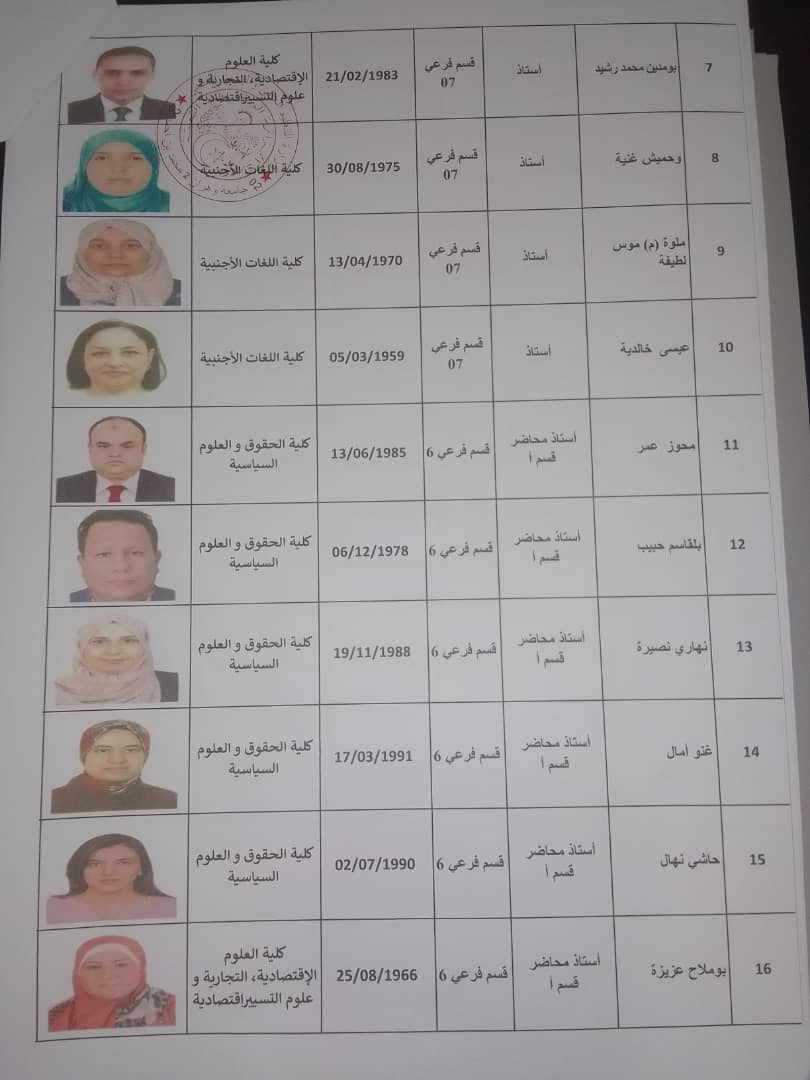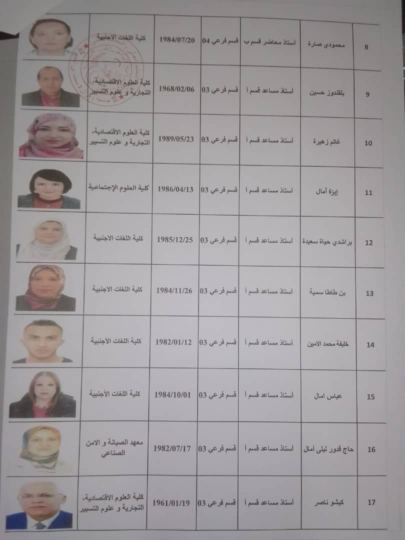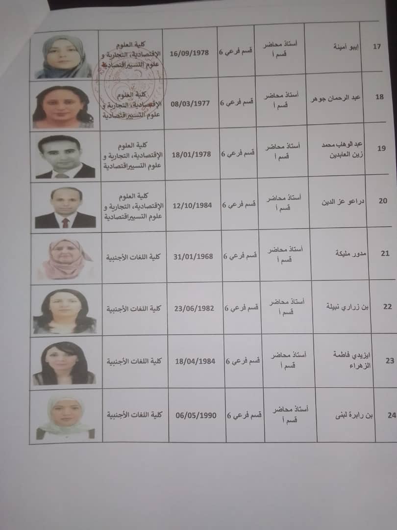 Vous êtes ici :Accueil » Liste officielle des candidats au renouvellement des membres de la commission paritaire administrative au niveau de l’Université Oran 2 – Mohamed Ben Ahmed