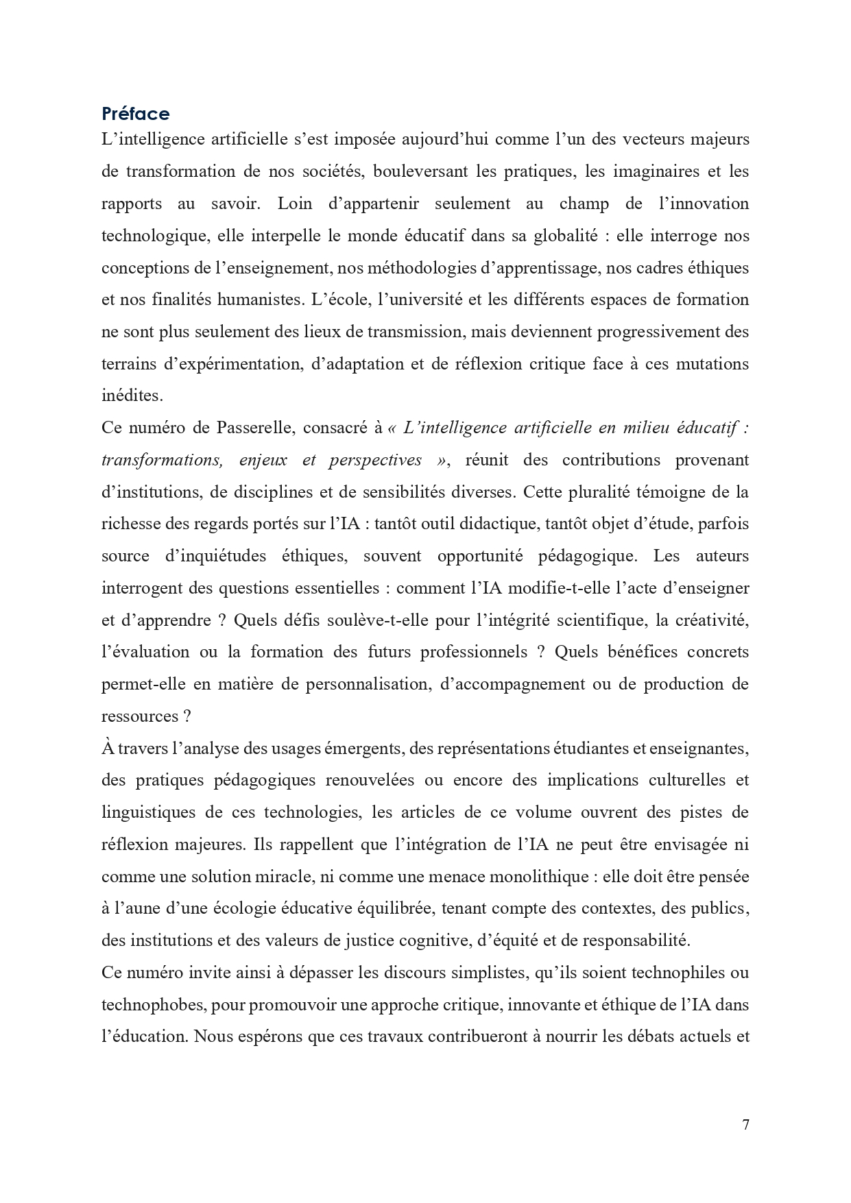 Ce numéro thématique, intitulé « L’intelligence artificielle en milieu éducatif : transformations, enjeux et perspectives », est coordonné par :