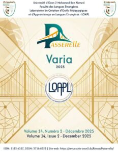 Revue publiée par le Laboratoire de Création d’Outils Pédagogiques et d’Apprentissage en Langues Étrangères (LOAPL), affilié à la Faculté des Langues Étrangères de l’Université d’Oran 2 Mohamed Ben Ahmed.